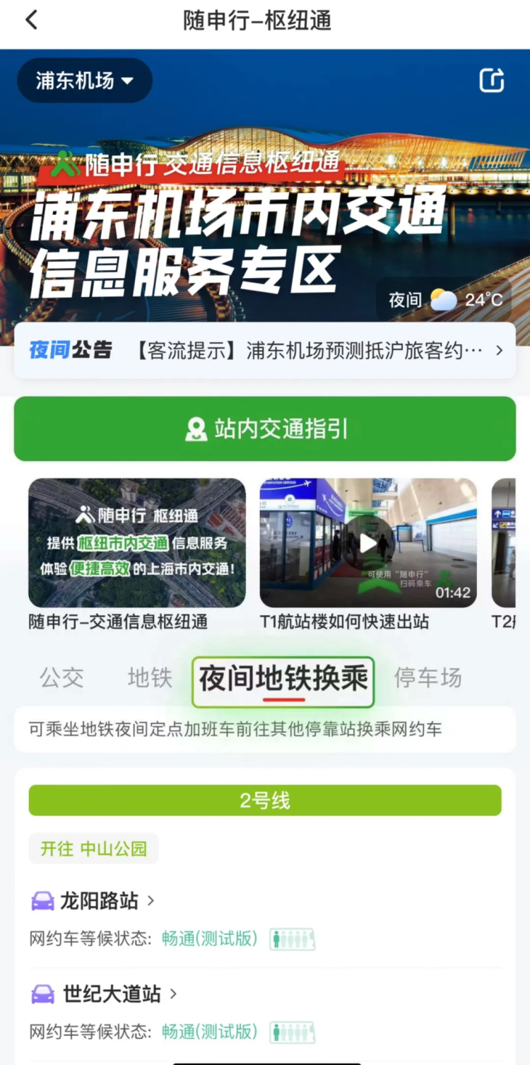 公交、地铁、停车场的实时交通状态,上车点查询,站内交通图片及视频指引,应急预警通知等一站式服务都可以实时查看。