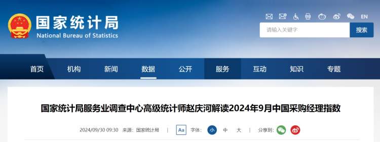2024年9月30日国家统计局服务业调查中心和中国物流与采购联合会发布了中国采购经理指数。对此,国家统计局服务业调查中心高级统计师赵庆河进行了解读。