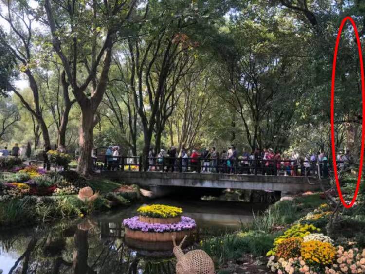 网红莫奈花园,红圈处的大梧桐树已被台风吹倒