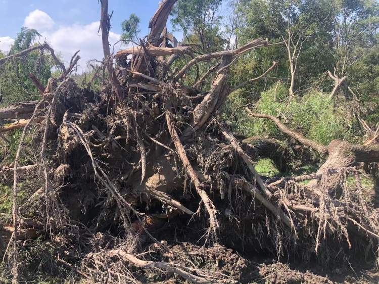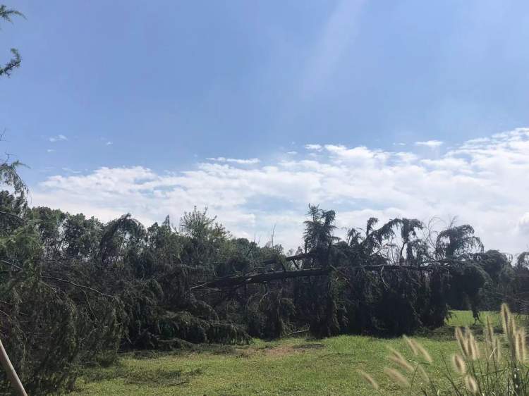 深入到森林深处,情况可以用“惨烈”来形容,胸径几十厘米粗的梧桐、水杉、雪松等都被连根拔起,令人震惊和心痛。