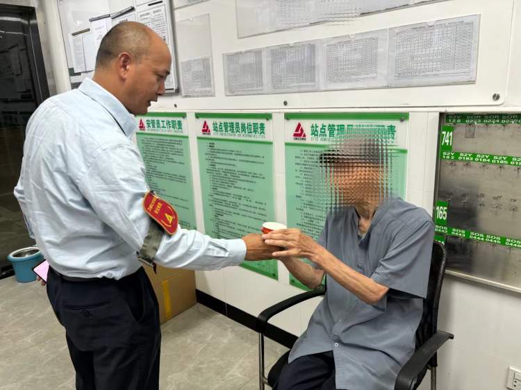 车辆抵达康宁路枢纽站后,陈荣将老人请到调度室,与当班站管员范春燕简单说明情况,为老人递上热水并安抚情绪。随后,范春燕询问老人家人的相关情况,得知了其儿媳的联系方式,随即与她取得联系。