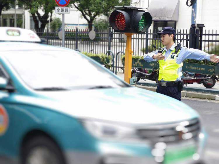 在东、西佘山之间的主要交汇斑马线上,警方增设了移动式红绿灯,确保游客和车辆的高效、有序、安全通行。