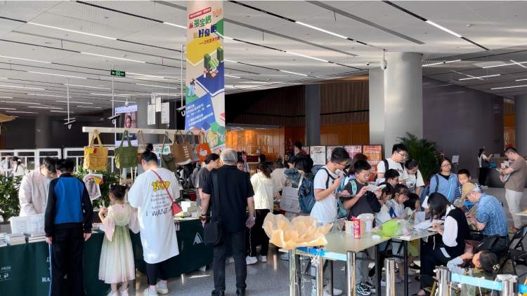 徐家汇书院户外广场上举办的“YUE汇趣”市集