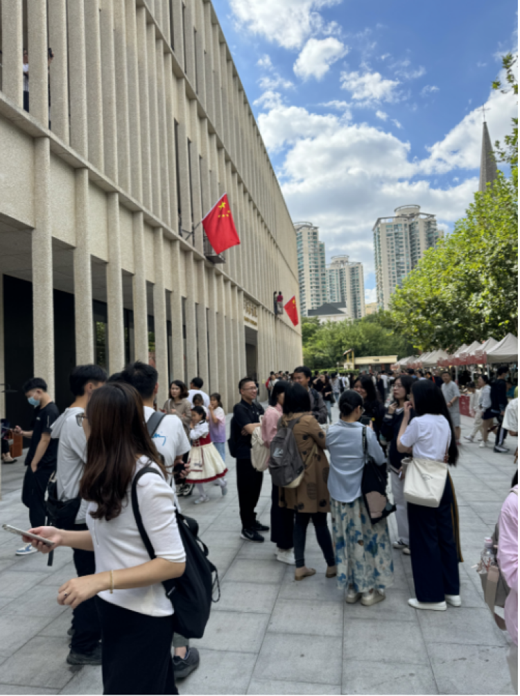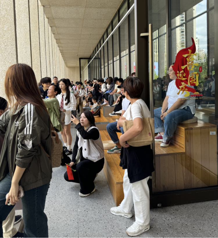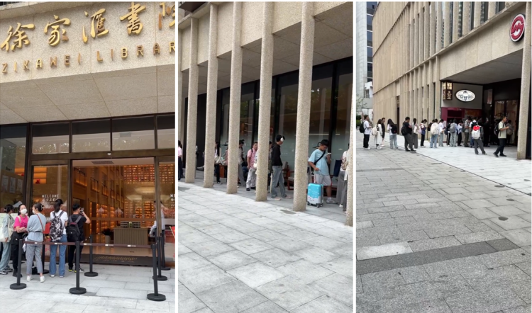 10月1日上午,徐家汇书院正门口排队的读者和游客