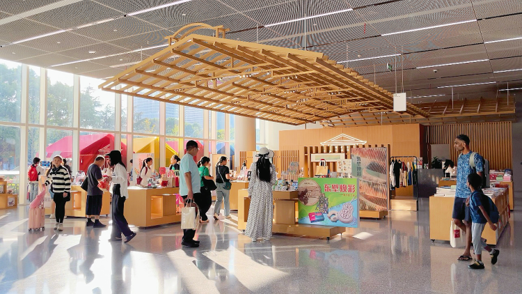 上图东馆一楼的智慧文创空间人头攒动