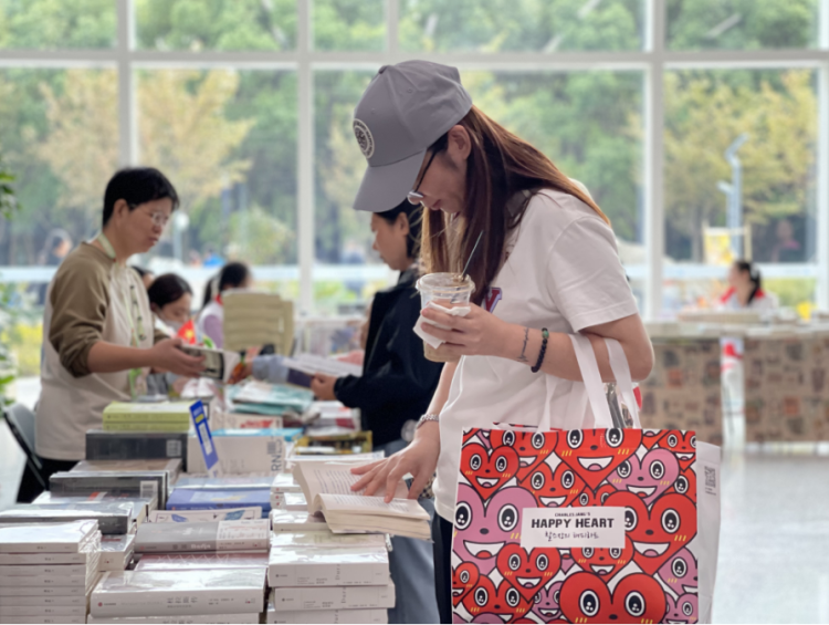 书院户外广场是“YUE汇趣”市集,各种与阅读、传统文化、趣味文创相关的商品引来市民游客的驻足,我当然也忍不住下场“买买买”。茶馆更是门庭若市,因为限流在书院门口排队的一些大小朋友,选择了坐下喝茶歇脚,蓝天白云与徐家汇源的好风景融为一体,自然惬意。