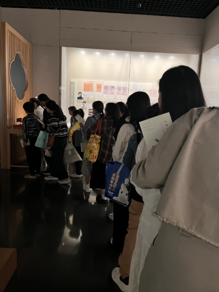 上海鲁迅纪念馆,市民排队体验“饾版”工艺
