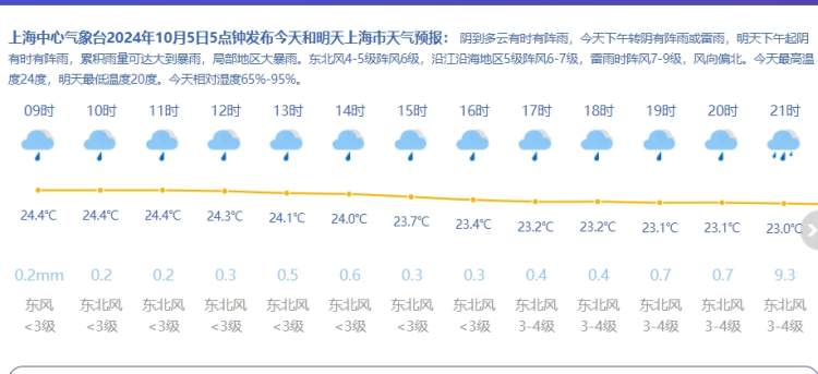 降水导致辐射降温效应减弱,今天最低气温在20℃附近。最高气温仍维持在24℃。相对湿度95%-65%,受梯度风影响,今日风力仍较大,东北风4~5级阵风6级,沿江沿海地区最大阵风有7级。