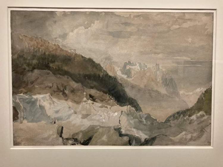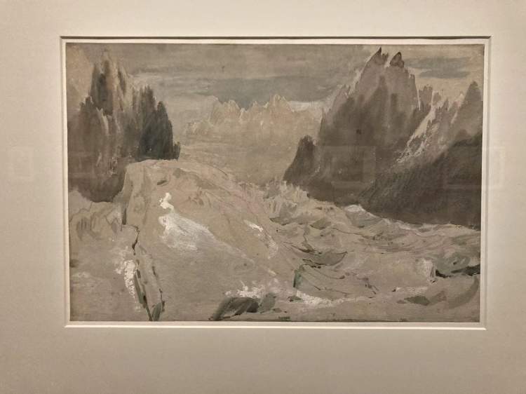 第一次欧洲游历时,透纳为了更好地表现法国最大的冰川——蒙特维冰川,也是为了邂逅大自然的崇高,他不惜爬到了冰川上面去观察和写生。