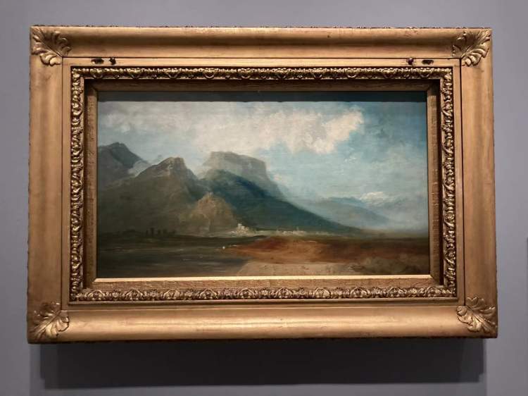 1802年透纳第一次欧洲大陆行之后创作的描绘阿尔卑斯山壮观景色的油画《从德拉克河望见的格勒诺布尔,远处为勃朗峰》