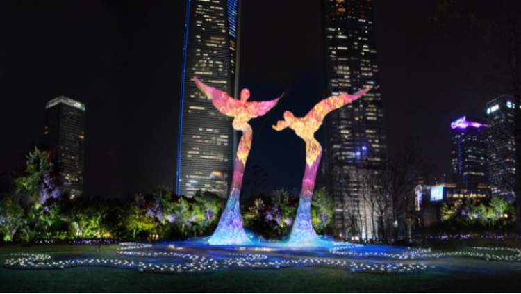 2.光影艺术雕塑:回翔绿洲