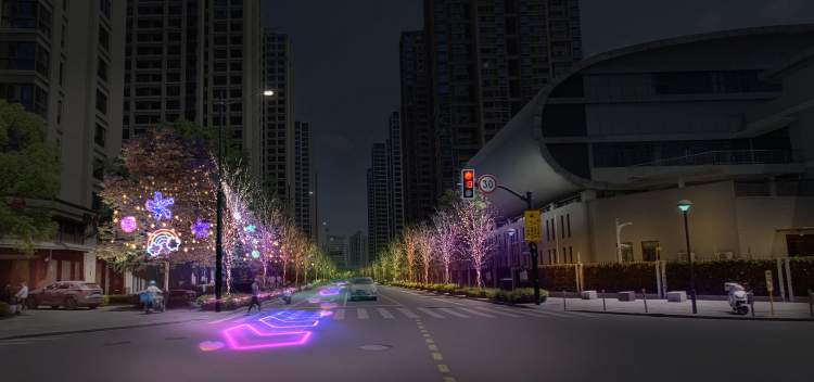 观赏内容:夜光步道—瑞虹路氛围布置,结合瑞虹天地光影季活动