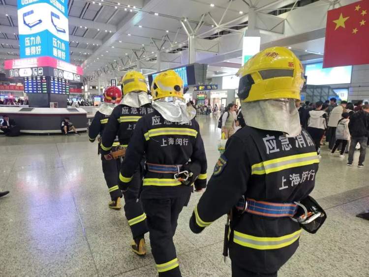 节日期间,交通枢纽人流量巨大,新虹、恒丰、梅陇消防救援站指战员分别驻守在铁路虹桥站、上海站和上海南站,不间断执行前置执勤和流动巡逻,守护着一批批旅客的平安出行。