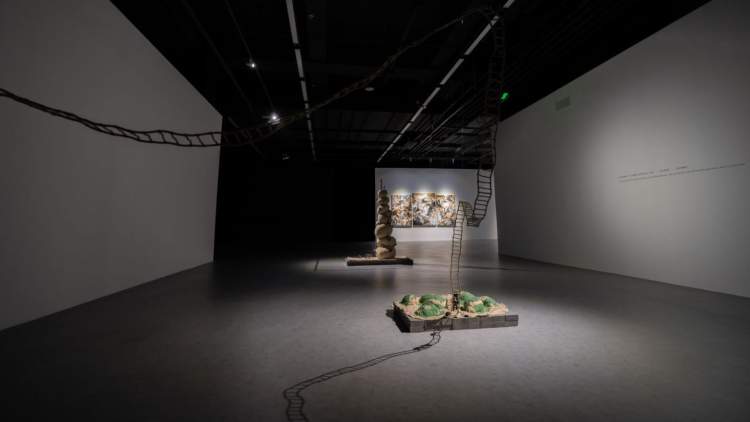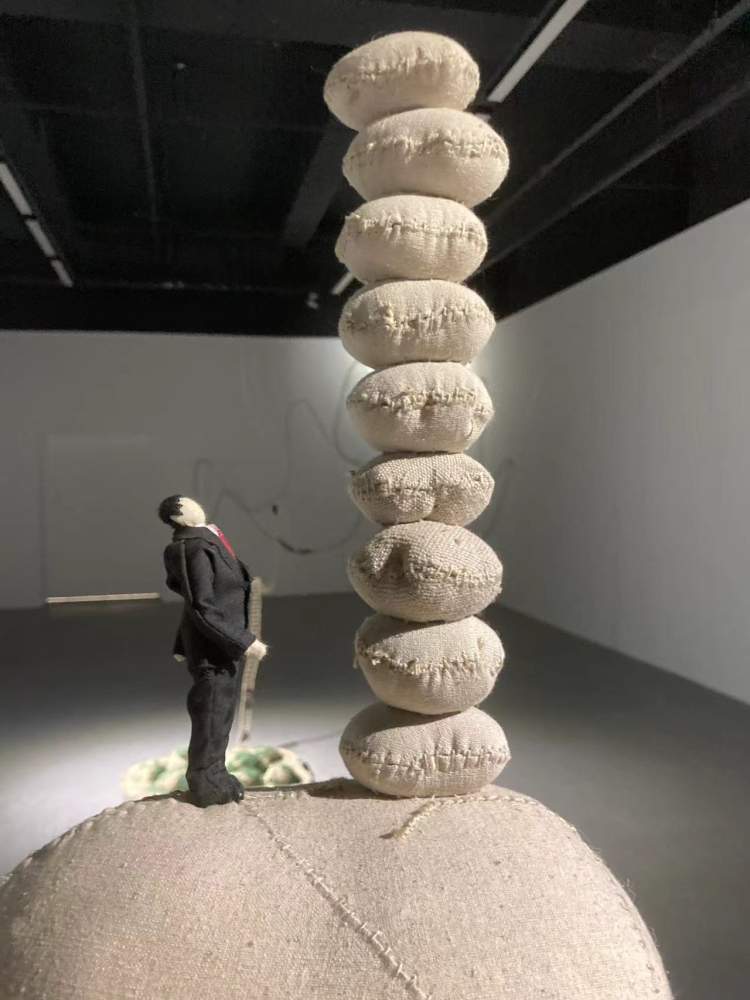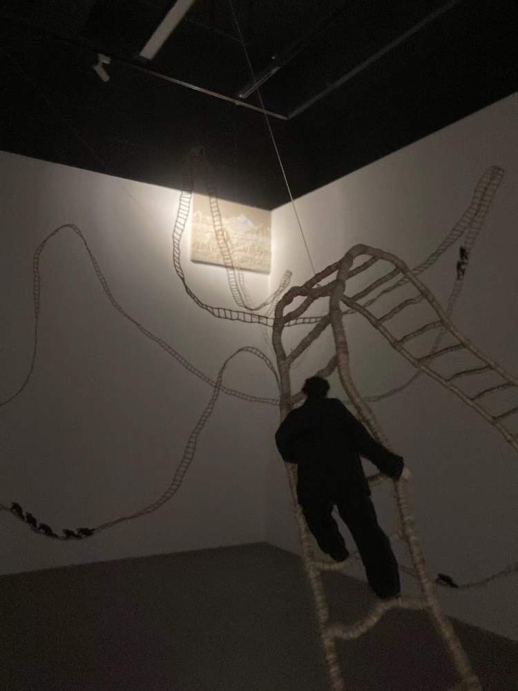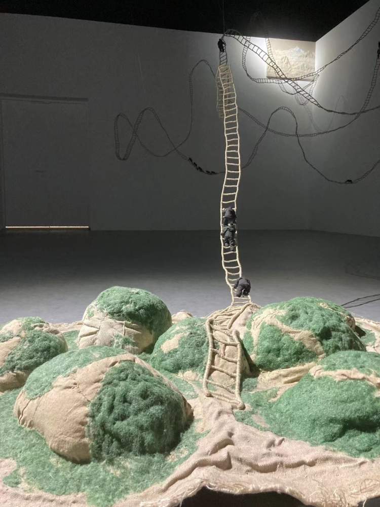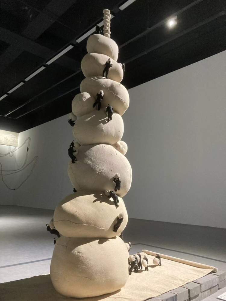 艺术家计文于和朱卫兵的装置作品《圣山不远》和《没有最高,只有更高》为山赋予了更多的意义。这里的山,可能是指一座自然的山,而人生也可能是一座山,社会也可能是一座山。艺术家创作了很多小人在山路上爬,每个人观看时,都会产生自己的理解。