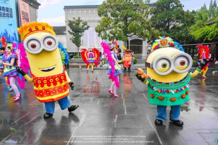 时隔一年,北京环球影城再次走进这方戏剧文化与娱乐艺术构筑的“乌托邦”。即日起至10月27日乌镇戏剧节期间,北京环球影城在古镇嘉年华环节呈现特别版狂欢嘉年华,小黄人鲍勃和凯文、朱利安国王及穿靴子的猫四位人气明星角色和多位舞者盛装邀请游客共舞狂欢、沉浸式“入戏”乌镇戏剧节。