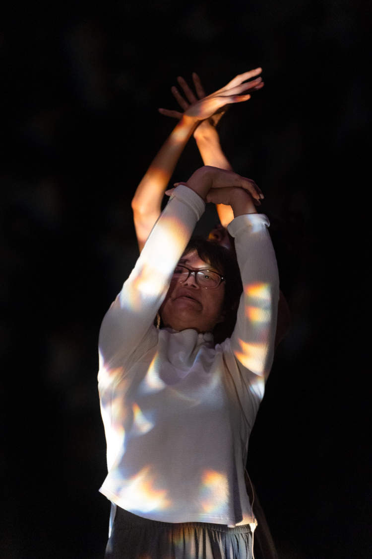 即便,前一天我们围绕这部即将于11月在上海首演的诗歌舞蹈剧场进行了超过一个小时的对话,还看过了许多她在排练和内部试演时的视频画面;但真正看到她站到舞台中央,那份好奇更加强烈:跳舞的余秀华,在想什么?