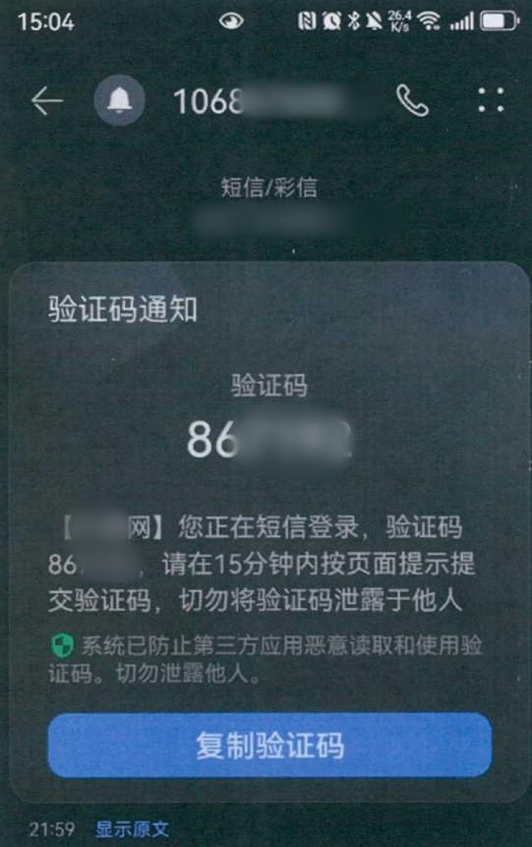 随后,陆先生收到了一条短信验证码,李某声称这是内部购票所需的验证码,并要求陆先生提供。事实上,该验证码是官方账号的登录验证码,李某利用它登录了陆先生的购票账户。