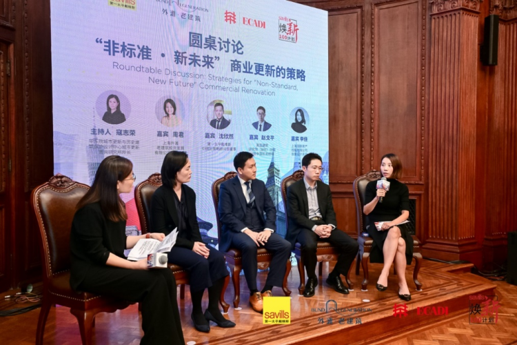 活动最后,由华东院城市更新咨询研究所所长寇志荣主持,邀请上海外滩老建筑投资发展有限公司副总经理周君、第一太平戴维斯中国区策略顾问部董事沈欣然、英国建筑研究院(BRE)中国区总经理赵戈平、上海百联资产控股有限公司创意设计总监李佳围绕“非标准 · 新未来”主题,就商业更新的多个维度进行深入探讨,深刻意识到,在“非标准 · 新未来”的商业更新道路上,平衡历史与现代、精准定位与差异化竞争、以及技术创新的应用都是至关重要的,让我们携手共进,探索更多商业更新的可能性,共同创造更加美好的未来。
