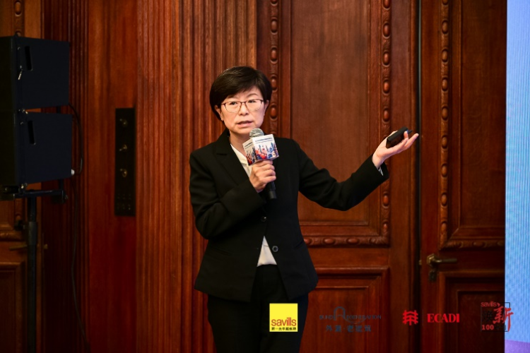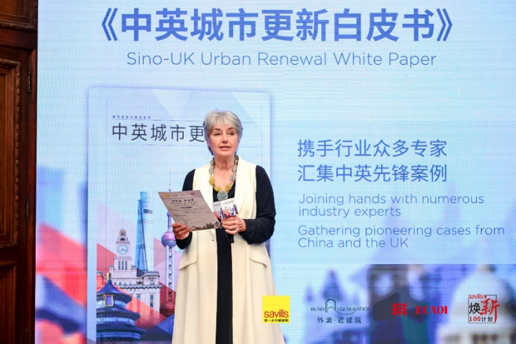 英方合作伙伴Allies and Morrison 建筑师事务所管理合伙人Jo Bacon女士也上台为大家分享宝贵见解,指出在城市更新项目中充分理解和发挥土地原有的风貌,更好地推进城市更新的工作。