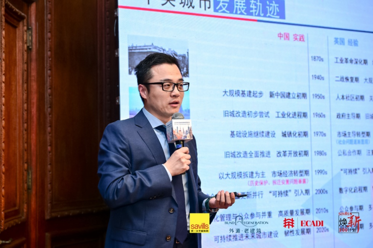 第一太平戴维斯中国区策略顾问部负责人朱锋解读中英城市商业更新的多元探索:“今日,我们荣幸地发布了《中英城市更新白皮书》,这是一份深入探讨中英两国在城市更新领域的多元探索和合作潜力的重要文件。白皮书指出,中英两国虽然在城市更新的历史背景、政策支持和实施方式上存在差异,但都致力于提升城市品质、促进经济发展和社会和谐。中国的实践强调政府主导和基础设施建设,而英国经验则注重历史建筑保护、社区参与和可持续发展。白皮书还展示了中英城市发展轨迹,从大规模基建到精细化管理与公众参与,并强调了中英城市更新的热点研究,包括绿色更新、运营更新以及保护与更新。
