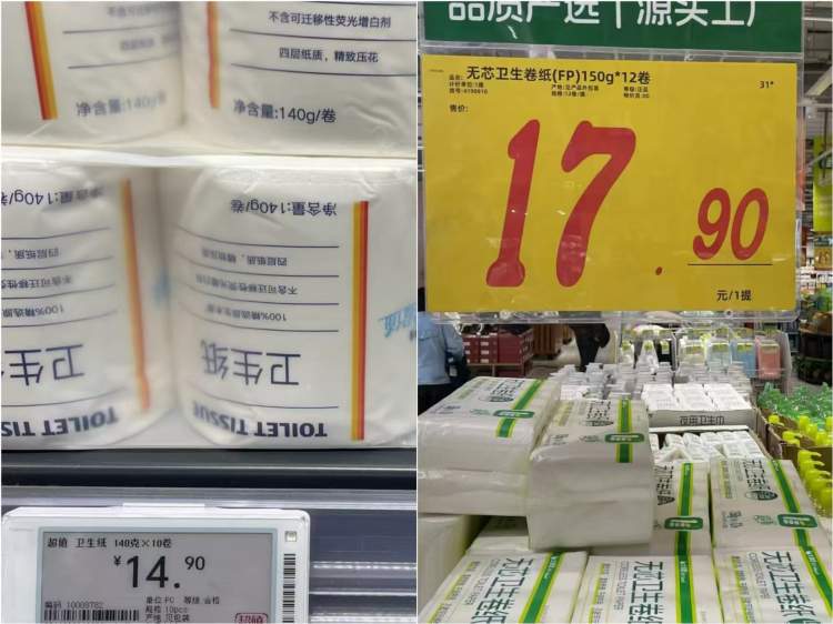 以卫生卷纸为例,奥乐齐10卷14.9元,大润发12卷17.9元,平均1卷都不到2元。如果将它们对比著名品牌的卫生纸,那是非常划算的,但对比电商上的杂牌卫生纸却不一定。重要的是对于这些高频使用的快消品,顾客在使用过后认不认可商品的质量,会不会再当回头客。
