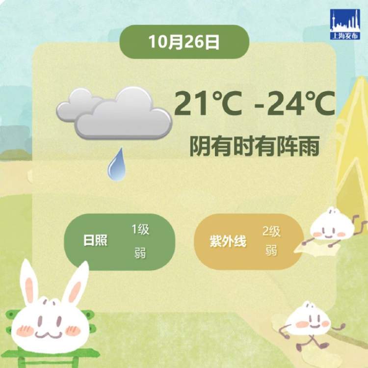 受台风“潭美”影响,今天上海阴有时有阵雨,夜里到明天上午局部地区累积雨量可达大雨。今天上海吹的是4-5级东北风,夜里转4-5级偏北风,全天气温在21℃-24℃之间。