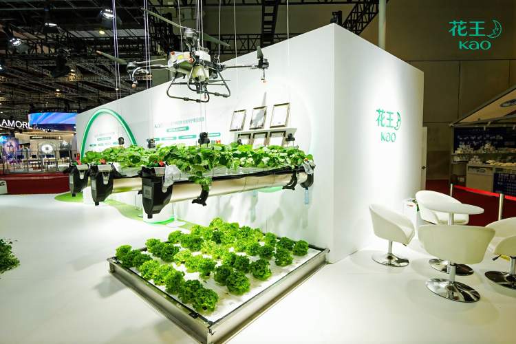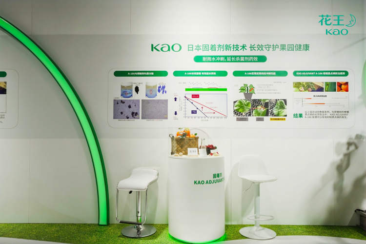 花王始终致力于ESG领域的持续创新,本届进博会上,花王丰富的绿色成果再次成为众人瞩目的焦点,尤其在农用化学品和循环利用创新方面。在农用化学品领域,如能够提升杀菌剂持效期的全球首发产品KAO ADJUVANT A-166固着剂、采用气门封锁技术增强杀虫效果的农药助剂“速快秀(SQUASH)”,以及以天然提取物为主要配方的农作物增收剂产品等。