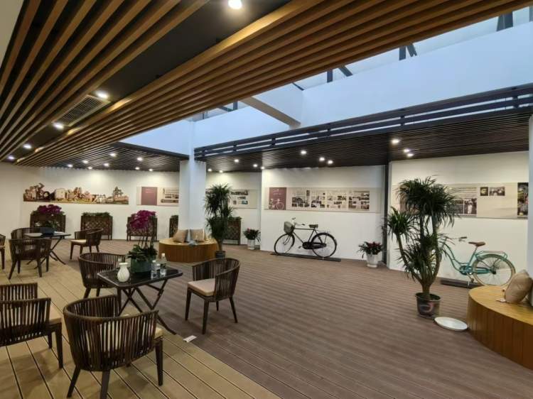 走进一楼庭院,超大休息区形成一个天然舞台,可以举办公益集市、音乐会等活动。每周五晚六点还有露天电影供居民打卡。(受天气因素影响,观影会不定期调整至5楼共享多功能厅。)