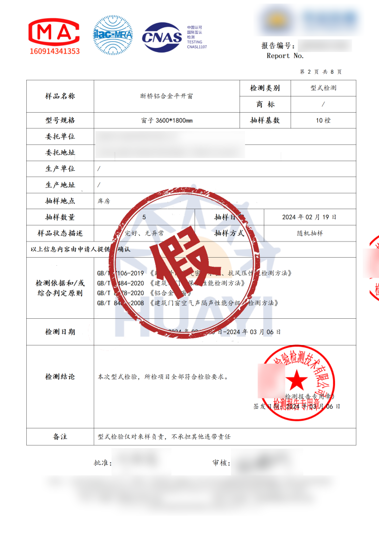 警方初步侦查发现,涉及的产品和报告数据存在明显差异,如一款雪花酥的碳水化合物营养素与实际检测不符,某断桥铝合金平开窗的气密性能也不符合国家标准。相关报告涉及食品、日用品、纺织品等多个类别,初步估计已有上百份假报告流入市场。