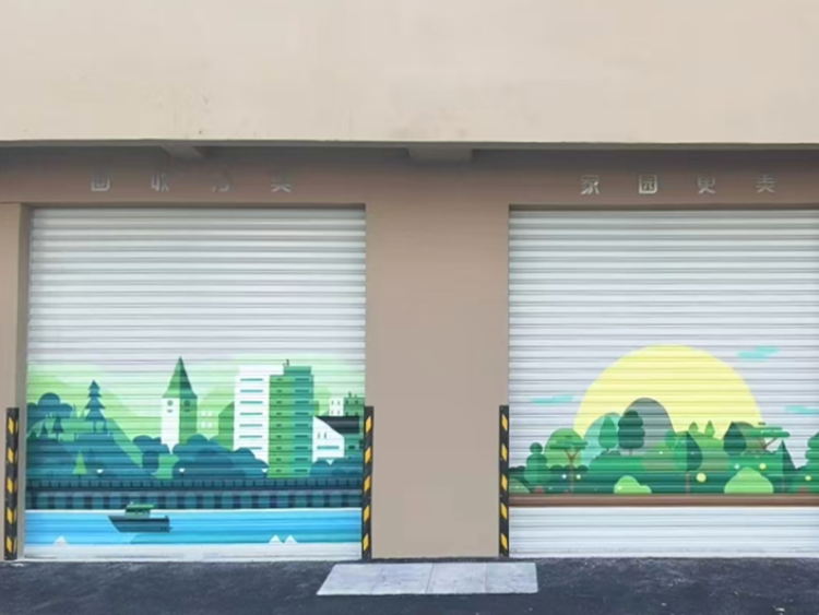 外观改造采用喷绘门帘,与周边环境相融合,提升“小压站”内外整体环境的和谐度与适宜性。