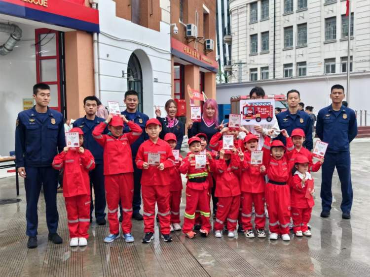 随后,小朋友们转场到了百年消防站——虹口消防救援站。