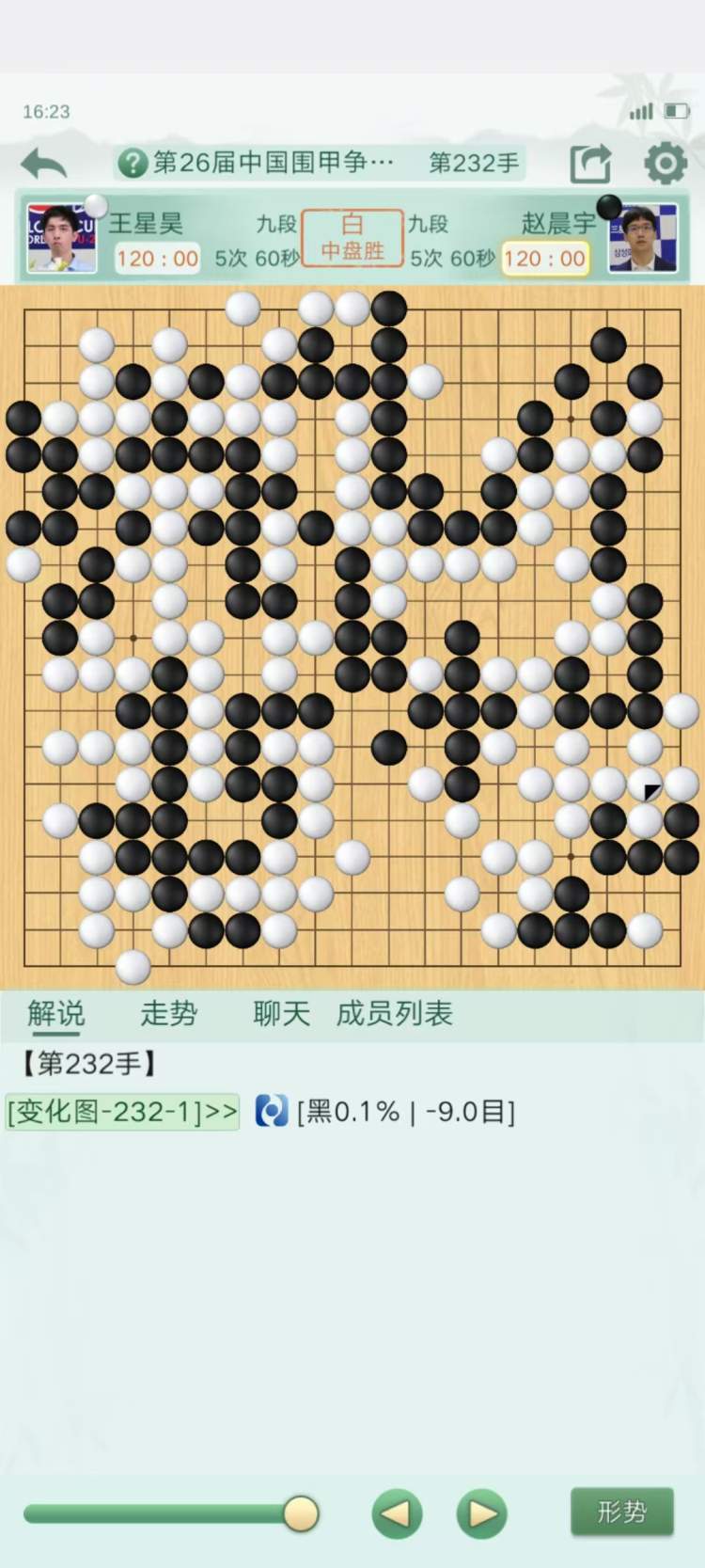 四台:王星昊执白中盘胜赵晨宇。