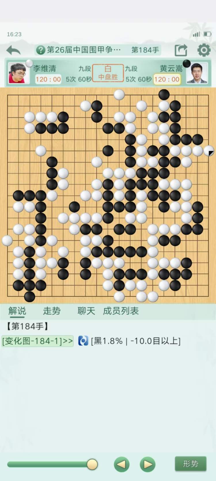二台:李维清执白中盘胜黄云嵩