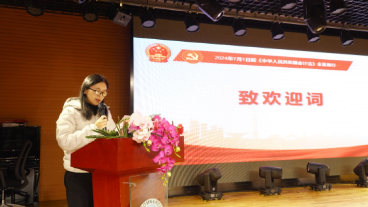 上海市商业学校副校长吴轶致迎致辞,介绍了学校的办学历史、校园文化和育人理念,并结合《新会计法》的修改情况,强调了会计工作贯彻落实党和国家路线方针政策,提高会计信息质量,维护社会公共利益的重要性。