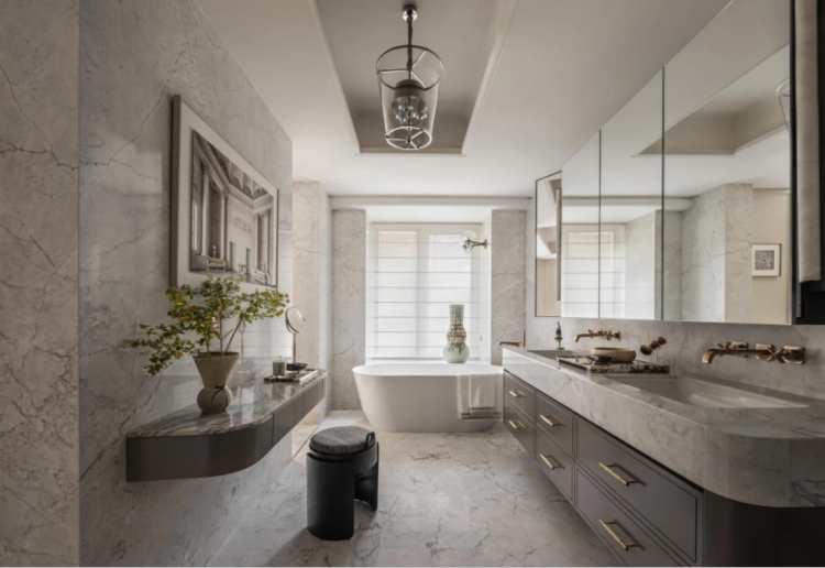 双套房的设计满足了家庭成员对于独立空间的需求,豪华主卧带双衣帽间,男女主人都有了私密的收纳空间,主卫带双台盆、淋浴、浴缸、马桶四件套。