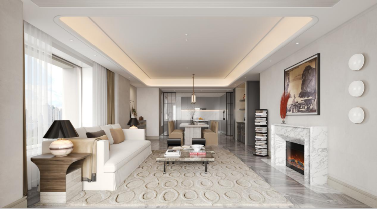 边套有约270°景观,室内约3.15米的层高让整个空间显得更加开阔大气。三面采光的设计,使得室内光线充足,拥有出众的景观和视野。超大的KDLB公区是一大亮点。这个公区面积约69㎡,几乎相当于市面一套房子的大小。