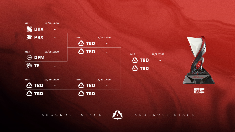 经历人员调整的VCT太平洋联赛老牌强队DRX本次比赛的发挥十分稳定,先在11月22日的比赛中以2-0战胜VCT CN联赛队伍BLG,随后在11月23日的比赛中以2-1战胜同赛区老对手GEN,率先锁定四强席位。