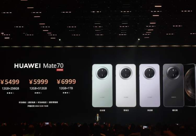 HUAWEI Mate 70系列于11月26日18:08开启预售,12月4日10:08正式发售,售价5499元起。