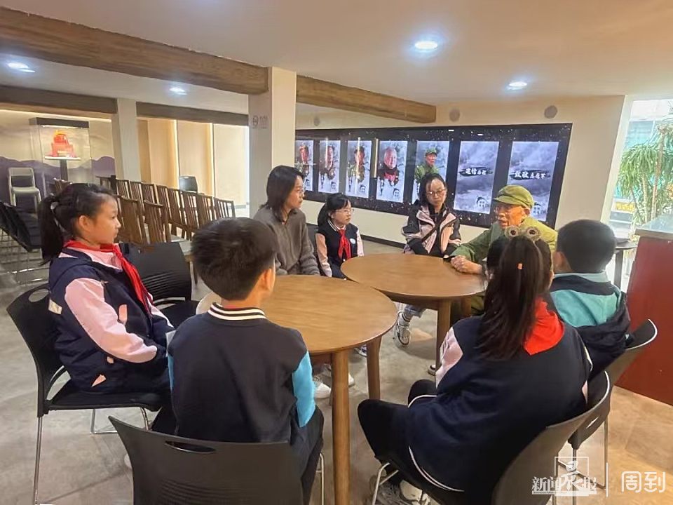 孩子们继续追问展示柜中陈列的什锦糖袋子的故事。朱爷爷说,那些糖都送给当地的孩子们了,他和战友们并没有吃过。听到这里,钱丽莎老师心中涌起一阵感慨。她告诉晨报记者,她看过朱爷爷年轻时在朝鲜战场的照片,“在那个战火纷飞、物资极度匮乏的岁月,他和战友们也不过是一群稚气未脱的少年啊!”