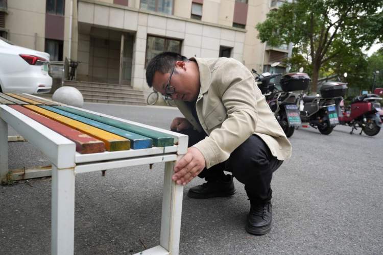 今年35岁的倪金涛是山东枣庄人,在劳动街社区的泰翔嘉苑小区已经住了七八年之久。由于自己从事装修工作,靠着熟练的手艺和乐于助人的性格,倪金涛成为社区自治团队“木工之家”的一员。倪金涛说,泰翔嘉苑小区是一个充满温情的农民动迁小区,老年人都很淳朴、热心,因此邻里之间感情都很好。“阿姨们平时都喜欢在这些公共座椅坐着聊天、晒太阳、织毛衣,早点修好也可以让她们放心坐了。”说完,倪金涛又和社区工作人员一起在小区里巡查了一圈,对所有的彩虹椅进行检修,确保每一把椅子安全可靠才离开。