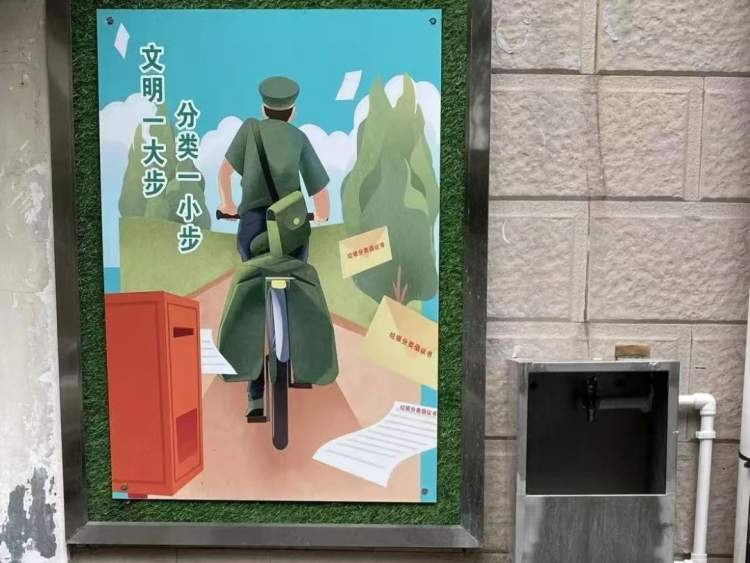 在精品厢房的改造升级过程中,街道减量办深入考虑居民投放垃圾的各个细节,从进入厢房到洗手离开,围绕安全、便捷、舒适的原则,对管弄路121弄13号附近的厢房因地制宜地改进了厢房投口形式,方便干湿垃圾投放;对管弄路311弄50号附近的厢房改进垃圾投放动线,调整洗手池位置;对251弄12号附近的厢房改进地坪坡度,安装护栏,消除安全隐患;合理调整了各厢房内四分类垃圾桶与洗手设备之间的布局,使其更加人性化;精确设计了投口的高度与尺寸,确保垃圾投放过程顺畅无阻。特别值得一提的是,邮政大楼的厢房采用了融入邮政元素的宣传图片,以垃圾分类倡议书飞向千家万户为寓意,增添了亲切感。