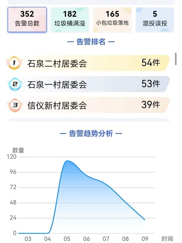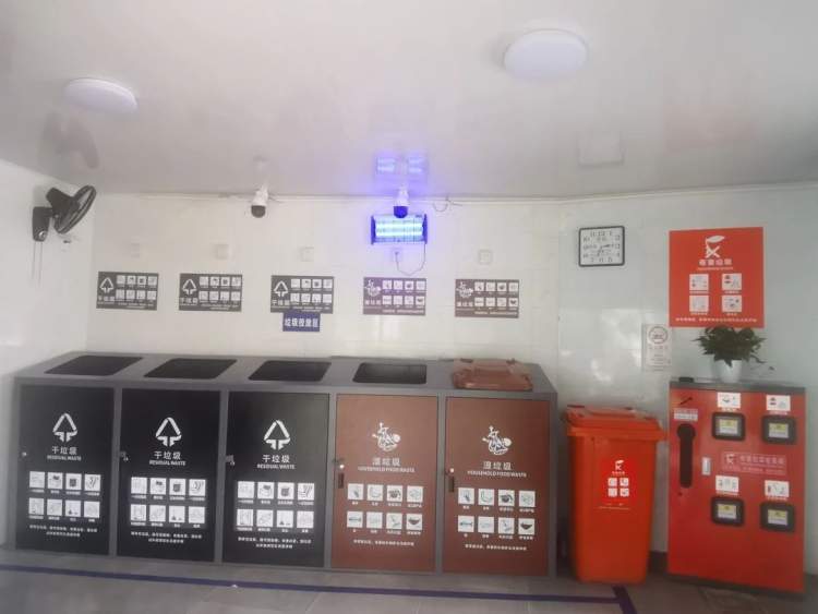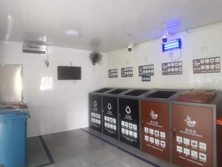 垃圾厢房引入了智能监控系统,智能识别小包垃圾落地、垃圾桶满溢、不分类投放等多种场景。可回收物投口细化为玻、金、塑、纸、衣等,进一步引导居民更精准、更便捷投放。通过对垃圾厢房的改造,厢房外观焕然一新,小区整体卫生环境整洁也有了改观,提高了居民垃圾分类投放的积极性和满意度。