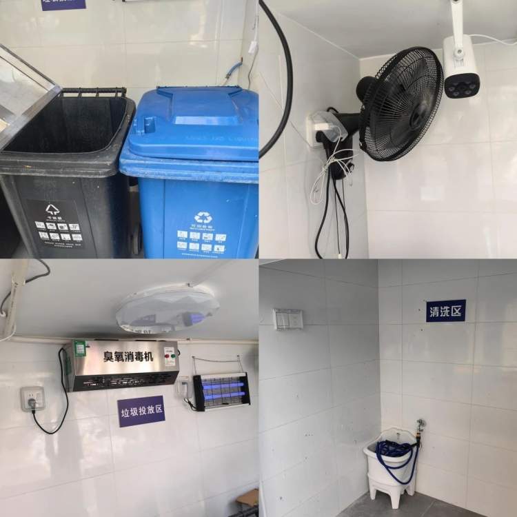 墙面和地面均铺设了防滑防渗的瓷砖,使得环境变得明亮且整洁。同时,通过彩绘、文化墙、电子显示屏和宣传牌等多种宣传形式,进一步美化了厢房的环境,营造了良好的氛围。此外,还新增了排风系统、除臭设备、灭蚊设施以及空调,极大地提升了厢房的使用体验。