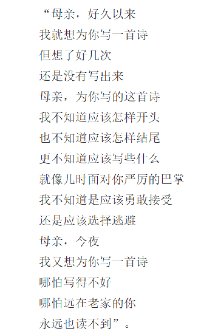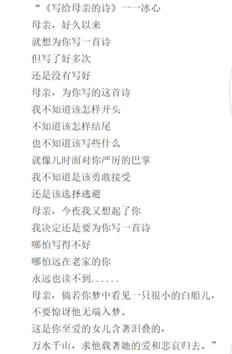 判决书显示的《诗潮》刊载的《写给母亲的诗》内容