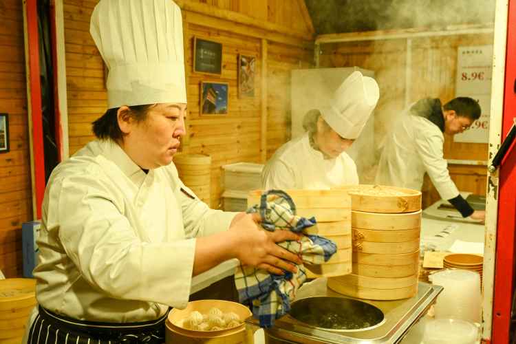 2023年12月15日,豫园灯会首次出海,在法国巴黎点亮。南翔小笼制作技艺第六代非遗传承人、南翔馒头店豫园店联席总经理游玉敏跟着豫园灯会一同把非遗点心带到了浪漫之都。和豫园灯会一样,小笼馒头也受到了当地市民的追捧,每晚8点左右就基本售罄。小笼馒头能跟着豫园灯会一同走向世界,这让游玉敏十分欣慰。