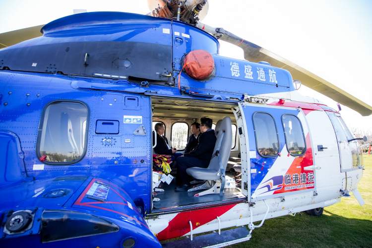 黄女士从上海临港滴水湖畔的北岛起降点登上直升飞机,20分钟以后,她已经身在浙江嵊泗了。