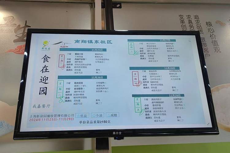 红烧肉、烧茄子、罗宋汤……不仅饭菜搭配有荤有素,而且老人取餐时系统自动称重计费,电子屏实时显示菜品价格和消费金额,简单方便。位于南翔镇东社区邻里中心的长者食堂通过智能化设备实现老年人及其他用餐人员自助取餐,无感支付,就餐效率明显提高。明厨亮灶、智能防跌倒监控、可溯源食品充分保障食品安全。