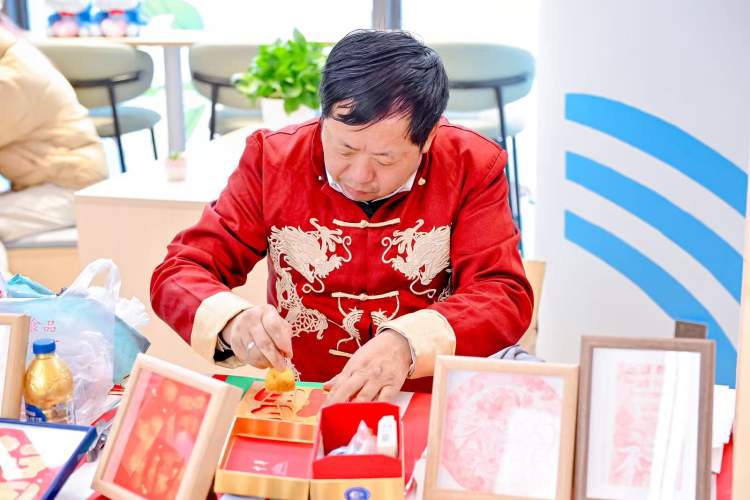 现场还开设了江浦“锋·尚”市集活动。记者注意到,古法拓印、糖人糖画等非遗文化体验项目吸引了不少居民驻足。