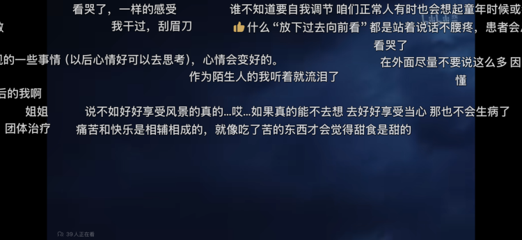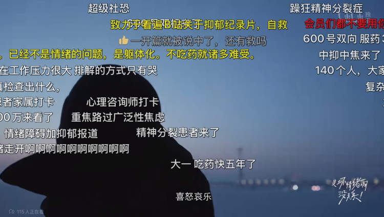 目前,《是坏情绪啊,没关系》这部纪录片的弹幕达到7万左右,弹幕评论区,“治愈满满”、“加油”一直刷屏,用户也会自发鼓励节目主人公,并在评论区分享自身的真实经历,共同证实并拥抱坏情绪。