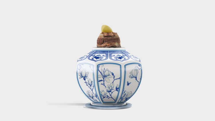 要给朱顶红穿上这件青花瓷“外衣”,并让它凹出青花瓷八棱罐的经典瓶型并不容易。研发企业的相关负责人介绍,这款朱顶红在包蜡工艺上也进行了原创革新,通过对蜡质、着色、温度等工艺的反复尝试和对青花瓷文化的钻研借鉴,才实现了青花瓷古朴清雅的风骨和晶莹明丽的釉色在蜡球上的复现,同时造型上也颠覆了以往的标准球体,将青花瓷八棱罐的经典瓶型融入其中。